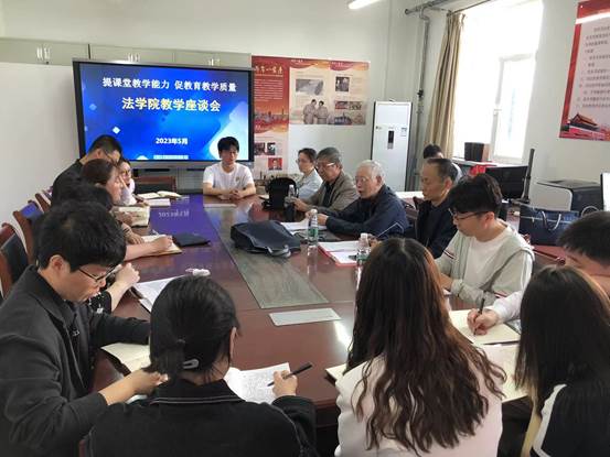 为进一步提高教师教学能力,全面提升教育教学质量,法学院于5月10日召开主题为“提课堂教学能力、促教育教学质量”的教学座谈会,由艾娟副院长主持,学校教学督导贾志成老师和王锐老师、学院教学督导邢素军老师、教学质量保障中心陈濛老师出席,系主任、青年教师和学生代表参加。