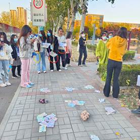 法律援助中心的同学深入校园,为校园内的来往学生发放普法宣传单,讲解了诚信考试、电信诈骗、疫情防控和国家安全的相关法律知识,并提醒同学们在日常生活中遵纪守法,做新时代合格大学生。