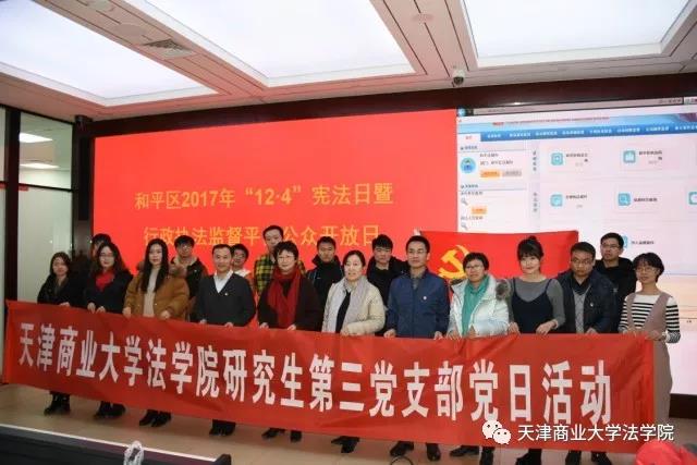党的十九大开启了全面建设社会主义现代化国家的新征程,特别强调“加大全民普法力度,建设社会主义法治文化,树立宪法法律至上、法律面前人人平等的法治理念”,对全民普法提出了新的更高要求。2017年12月4日上午,和平区政府法制办联合我校法学院研究生第三支部以国家宪法日为契机组织开展了行政执法监督平台公众开放日活动。
