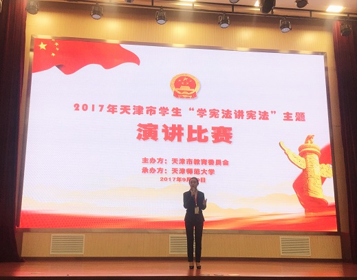 2017年9月30日,天津市第二届学生“学宪法,讲宪法”主题演讲比赛于天津师范大学举行,我院学生陈泽丽以出色的表现,荣获高校(高职)组特等奖。