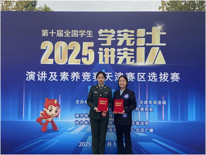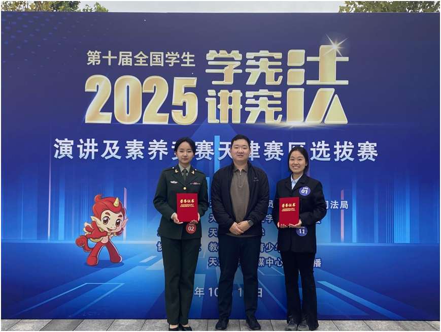 10月11日,天津市第九届学生“学宪法 讲宪法”比赛暨教育部第十届全国学生“学宪法 讲宪法”活动天津赛区选拔赛在天津理工大学举办。我校法学院法学2306班学生郑言凭借优秀的现场表现获得素养竞赛(高校组)一等奖、法学2404班学生张祎获演讲比赛(高校组)一等奖、法学2402班倪梦颖获演讲比赛(高校组)优秀奖。